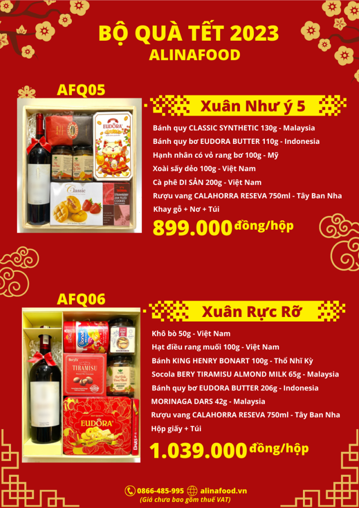 AlinaFood hân hạnh đồng hành cùng Quý khách với Bộ Quà tặng Tết 2023 đầy ý nghĩa, sang trọng, chất lượng như ý !
