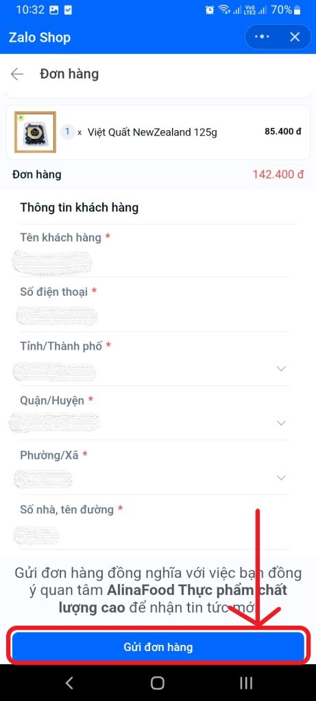 1.3. Quý khách chọn Đơn hàng -> Nhập thông tin người mua, số điện thoại, địa chỉ nhận hàng -> Chọn nút “Gửi đơn hàng” là xong !